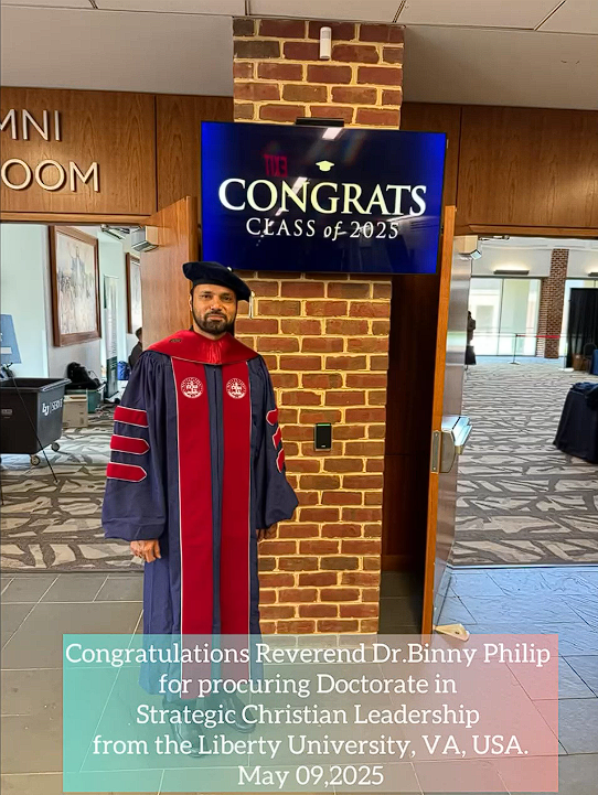 Fr. Binny’s academic achievement marks a significant milestone not only in his personal and spiritual journey but also in the life of the Church, where dedicated and visionary leadership is ever more essential. The doctorate program at Liberty University is designed to equip Christian leaders with advanced skills in organizational strategy, servant leadership, and transformational ministry. Fr. Binny’s commitment to deepening his understanding and ability to serve is a testament to his faith, dedication, and pastoral vision.