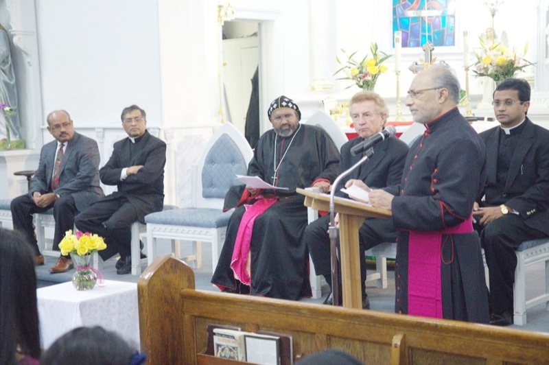 Rev. Monsignor Peter Kochery, the Vicar General of the Syro-Malankara Catholic Exarchate, who has been honored by the Holy Father with the title ‘Chaplain to the Holy Father’ was accorded an official felicitation by the Exarchate on Saturday, Nov. 17, 2012 at the St. Thomas Syro-Malankara Catholic parish in New Jersey by the Syro-Malankara Catholic Exarchate. The celebration started with a thanksgiving Holy Mass celebrated by His Excellency the Most Rev. Dr. Thomas Mar Eusebius, Bishop of the Exarchate and concelebrated by Rev. Msgr. Peter Kochery and many Rev. Fathers. Rev. Fr. Brendan Williams of the Diocese of Trenton preached the homily. Many of our faithful from our parishes in Long Island, Queens, New Rochelle, Rockland and Philadelphia participated in the Holy Mass. After the celebration of the Holy Mass there was a short felicitation meeting. Rev. Fr. Jacob John welcomed the gathering and Bishop Eusebius, Rev. Fr. Augustine Mangalath, Father Brendan, Mr. James George, Mr. John Varghese, etc. felicitated the new Monsignor. Monsignor Peter Kochery thanked the gathering. The celebration was concluded with agape.