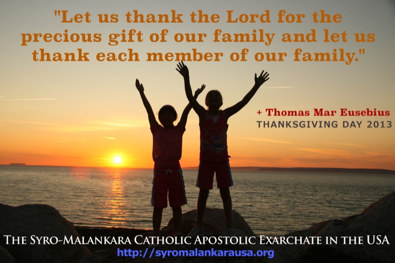 But this sense of my deep intimacy and indebtedness to my family is to be felt and lived all the days of my life, not only on the Thanksgiving Day. On the Thanksgiving Day we do it with signs and symbols. But every day of the year we live and cherish this relatedness. I would not be what I am today without the love and sacrifice of my parents, the care and concern of my siblings, the unconditional love and support of my wife/husband, and the hope and joy that my children bring to my life. In return to all these, I set aside my life to enrich my family. And this is real thanksgiving. One important thought that should fill my mind on a day like this is this: ‘the family is not for me, but I am for the family’; that is, my wife/husband, my parents, my siblings, my children are not to be considered as mere means to fulfill my life, but I am there to fulfill their life. The primary aim of my life as a family member is to enrich their life through my life because I owe so much to each of them. Let us thank the Lord for the precious gift of our family and let us thank each member of our family. May the Thanksgiving Day help us to heighten our profound family feelings. I wish all of you a blessed Thanksgiving Day and a meaningful family reunion.
