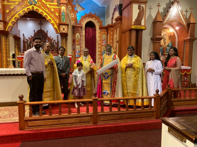 The 2022 Eparchy Day celebration was held on Saturday, October 15, 2022, at the St. Vincent de Paul Cathedral in Elmont, New York. The celebrations began with Morning Prayers and the solemn concelebrated Holy Qurbono at 8:30 a.m. with the Eparchial Bishop, Most Rev. Dr. Philipos Mar Stephanos, as the Main Celebrant. At the conclusion of the Holy Qurbono. a short felicitation meeting was conducted. The Pastoral Council Secretary, Mr. Sunil Chacko presented a gift to Bishop Stephanos on behalf of the Eparchy.
