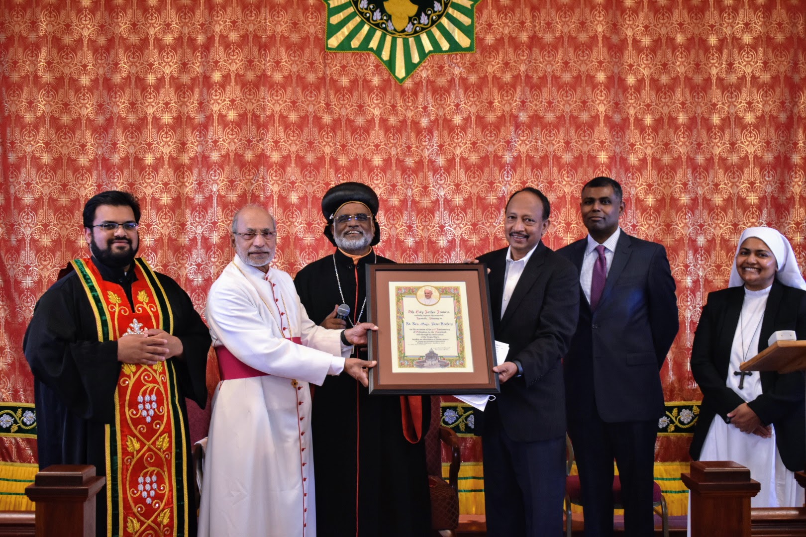 Shortly after the Holy Qurbono a brief felicitation program with His Excellency Most Rev. Dr. Philipos Mar Stephanos, Associate Pastor Rev. Jobin Thomas and a small group of parishioners present. Cor-episcopo’s family in India, Canada, New Zealand and other parts of the globe, and remaining parishioners were able to view the Holy Qurbono and program live on parish YouTube channel.